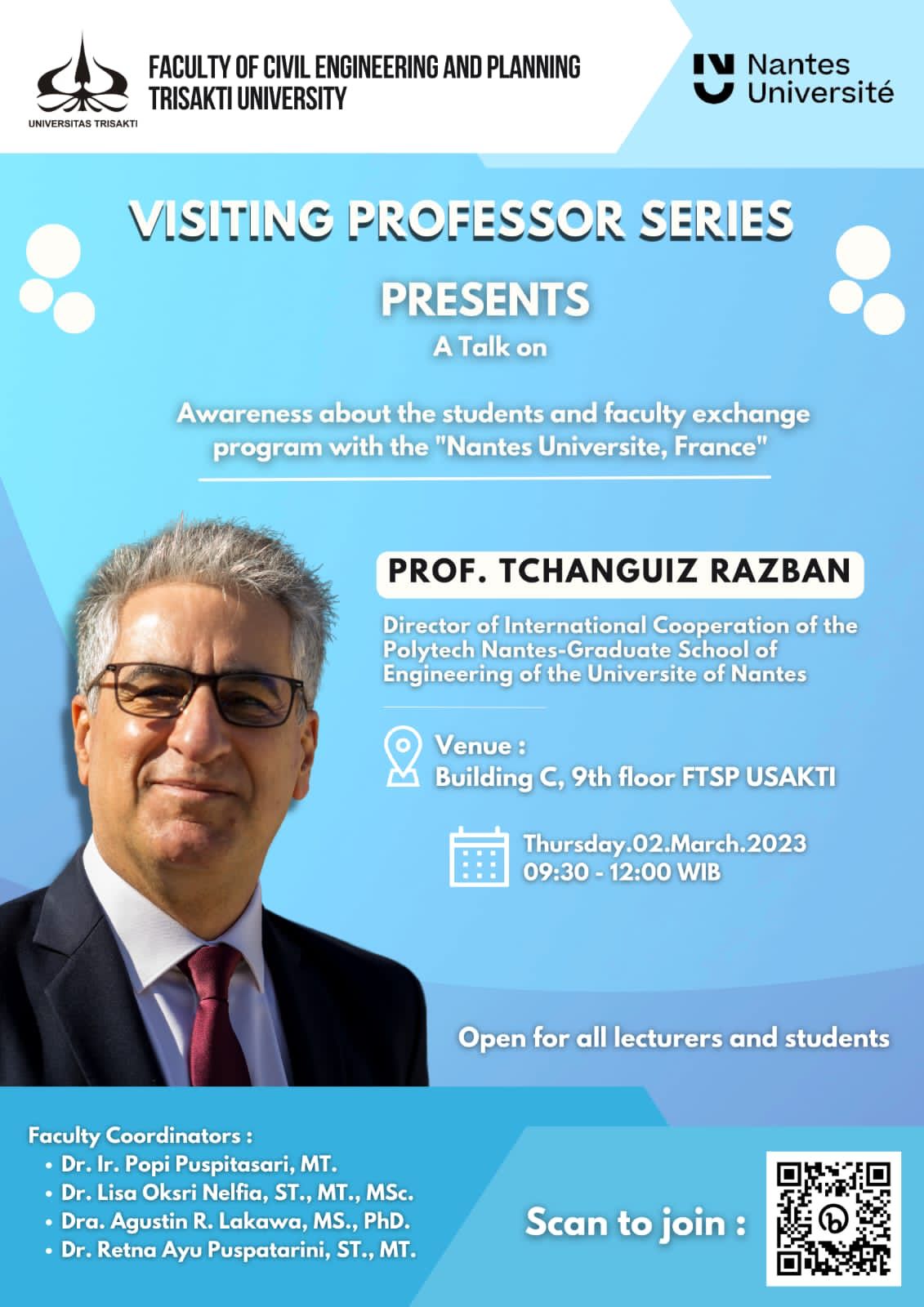 Puji Syukur dipanjatkan kehadirat Allah SWT atas Rachmat dan hidayahNya sehingga informasi tentang Fakultas Teknik Sipil dan Perencanaan (FTSP) Universitas Trisakti ini bisa dipublikasikan. Walaupun memang belum bisa menggambarkan secara keseluruhan kegiatan proses belajar-mengajar, penelitian dan pengabdian kepada masyarakat serta berbagai aktifitas lain dan prestasinya, namun semoga informasi ini dapat menjadi jendela informasi untuk bisa melihat lebih dekat FTSP dan bermanfaat bagi masyarakat luas.